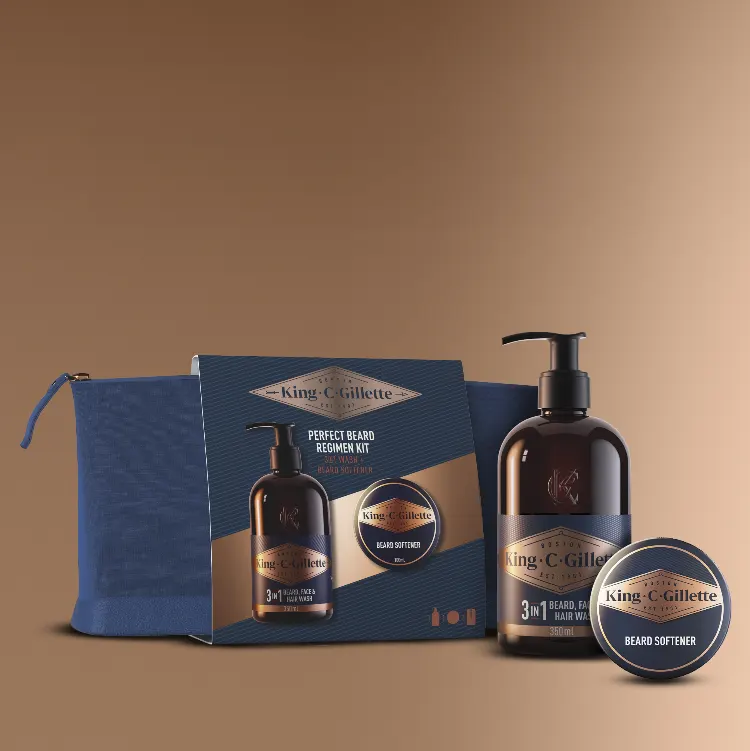 O nosso gel de barbear transparente King C. Gillette irá brevemente tornar-se uma parte essencial da sua rotina de barbear, ajudando-o a livrar-se do ardor ao barbear durante o barbear.
