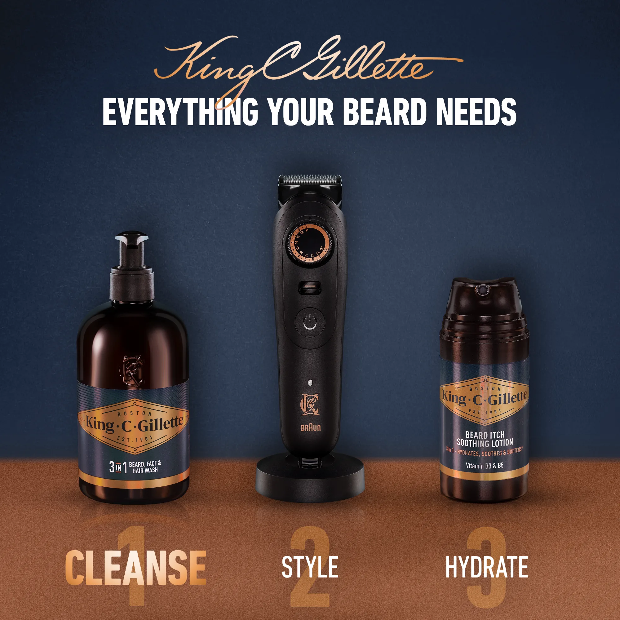 - Com a fragrância masculina exclusiva King C. Gillette com notas de salva, cedro, cardamomo e sândalo